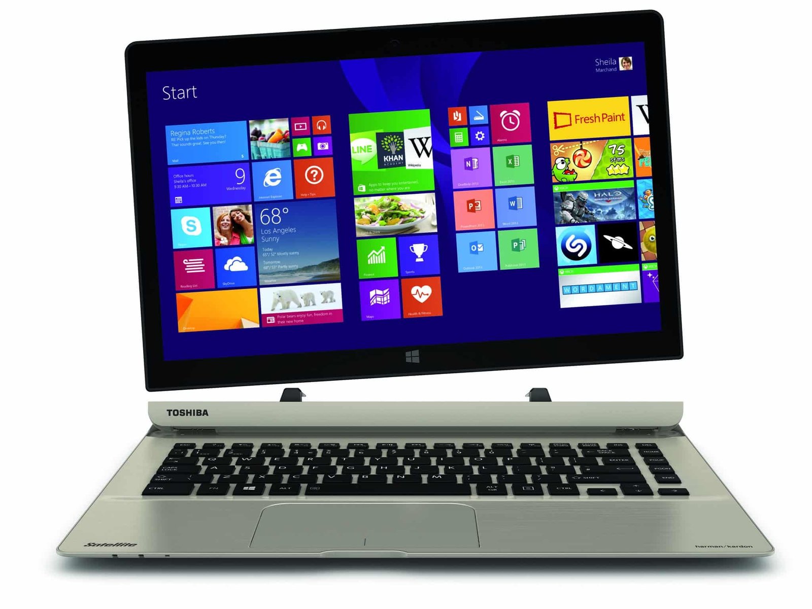 D’une épaisseur de 11 mm seulement en mode tablette (20 mm avec le clavier rabattu), le Satellite Click 2 Pro P30W s’utilise partout, en toutes circonstances. Fine et légère, elle n’oublie pas d’être élégante : son châssis en aluminium brossé, doré et satiné, en fait un modèle adapté à tous les usages, aussi bien professionnels que personnels.